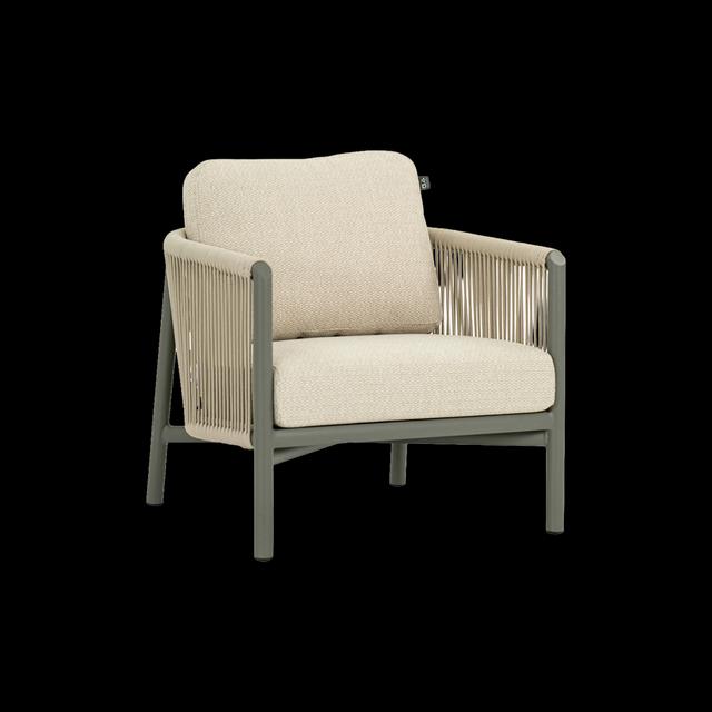 De Bora Bora lounge tuinbank in de kleur Taupe past in elke buitenruimte. Het taupekleurig aluminium frame is ingewoven met touw. Het raffinement zit in de details: de armleuningen zijn mooi afgeschuind en de achterpoten staan iets verder naar buiten.