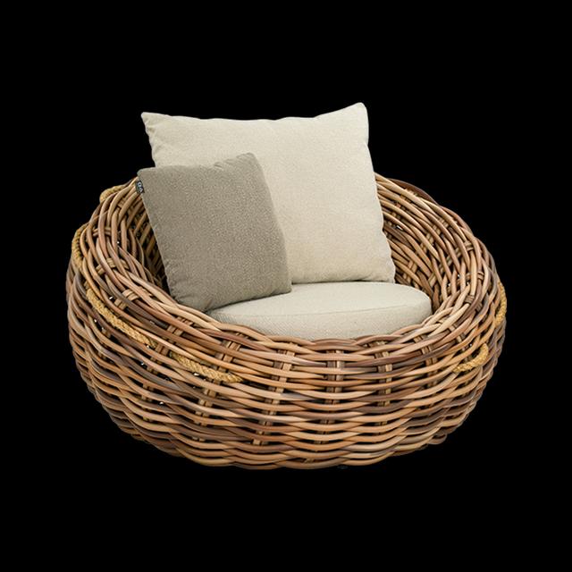 De Cocoon is al tientallen jaren een waar icoon van de Apple Bee collectie, ontworpen door Sako Wijma. In de loop der jaren zijn er veel variaties geweest, maar het ontwerp met zijn organische vormen is nog steeds eigentijds. De 'giant' Biculair® weving heeft een verfijnde 'Mocha' kleur. De kussens hebben een wasbare hoes in een frisse 'Cream' bouclé stof. De rugkussens zijn nu iets groter voor nog meer comfort en hebben een contrasterend deco-kussen.