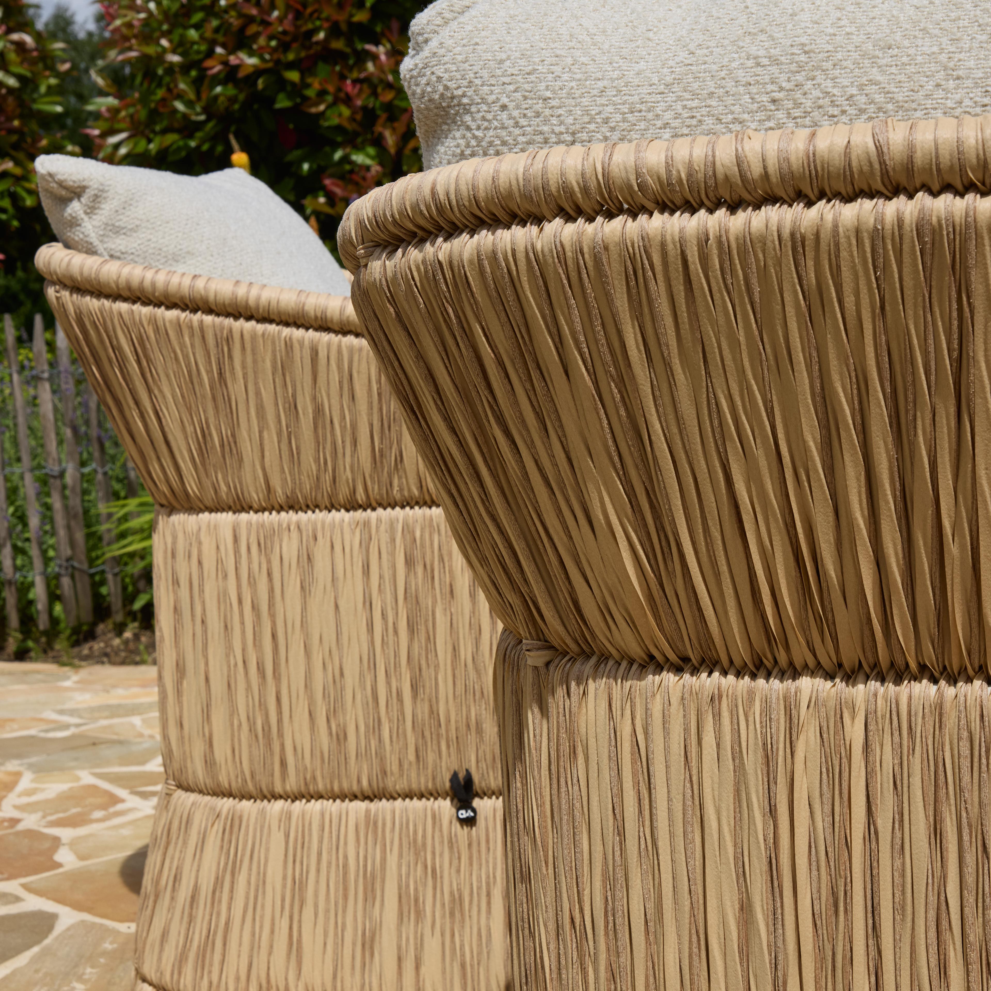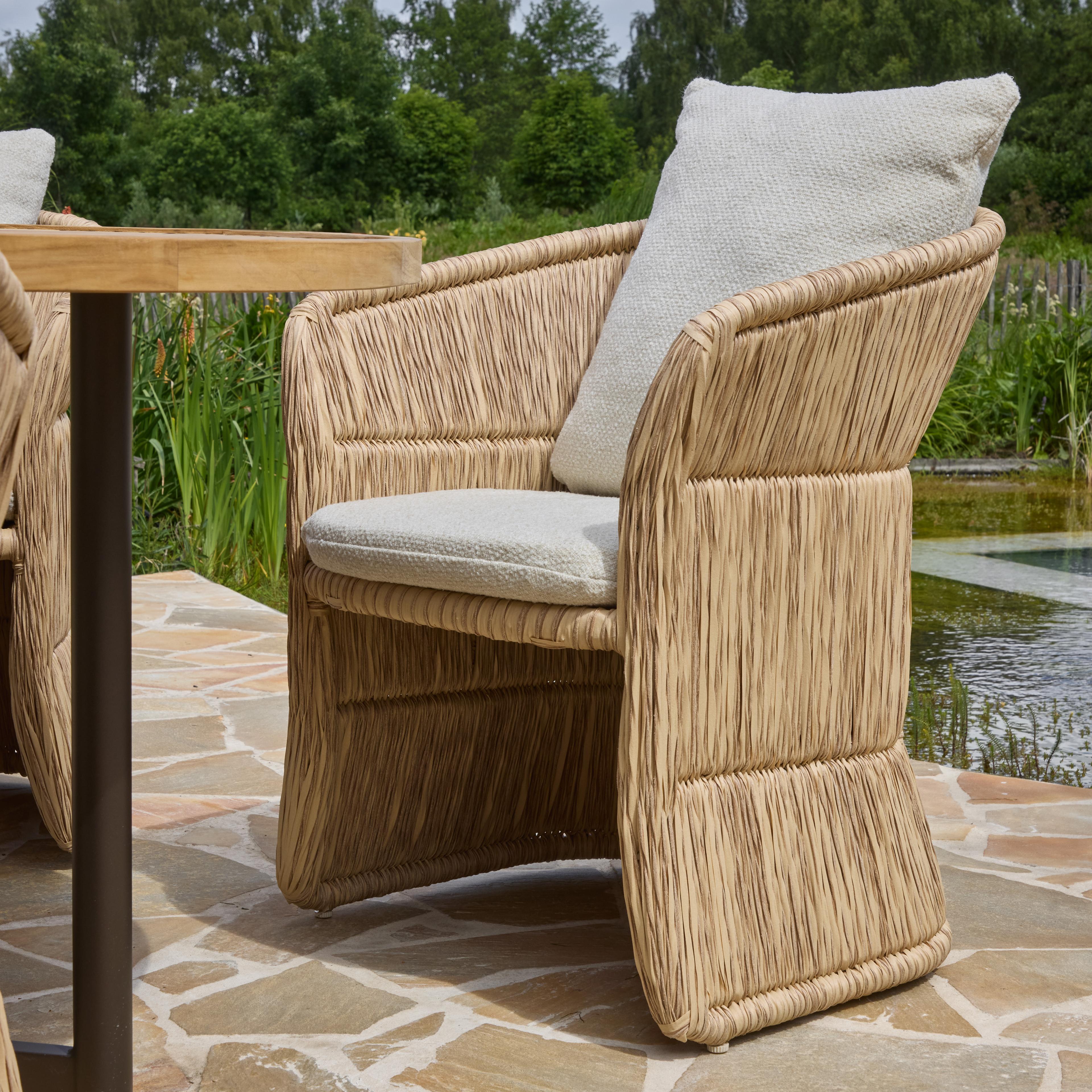 Met de Gili dining tuinstoel hoef je niet meer op reis te gaan om het vakantiegevoel te ervaren! Het vlechtmateriaal 'twisted leaf' geeft de stoel een natuurlijke en rustieke uitstraling voor een ontspannen sfeer. De kussens zijn gestoffeerd met de luxe Bouclé cream stof en hebben een Bee Wett® vulling, wat zorgt voor comfort en weerbestendigheid.