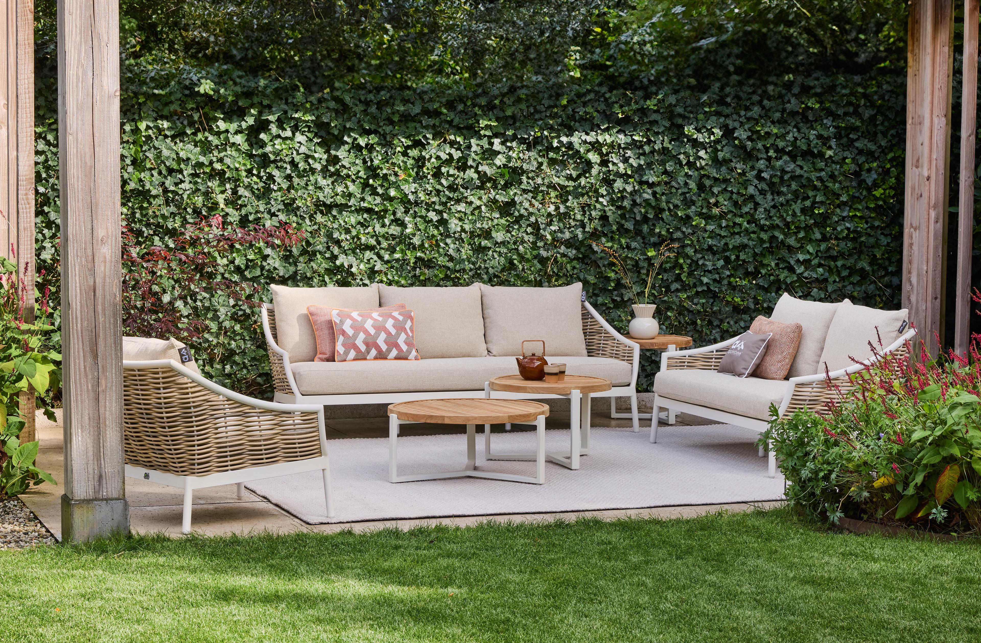 De loungeset bieden een 1-, 2- en 3-zitter en kun je combineren met de Monaco en Condor lounge tuintafels.