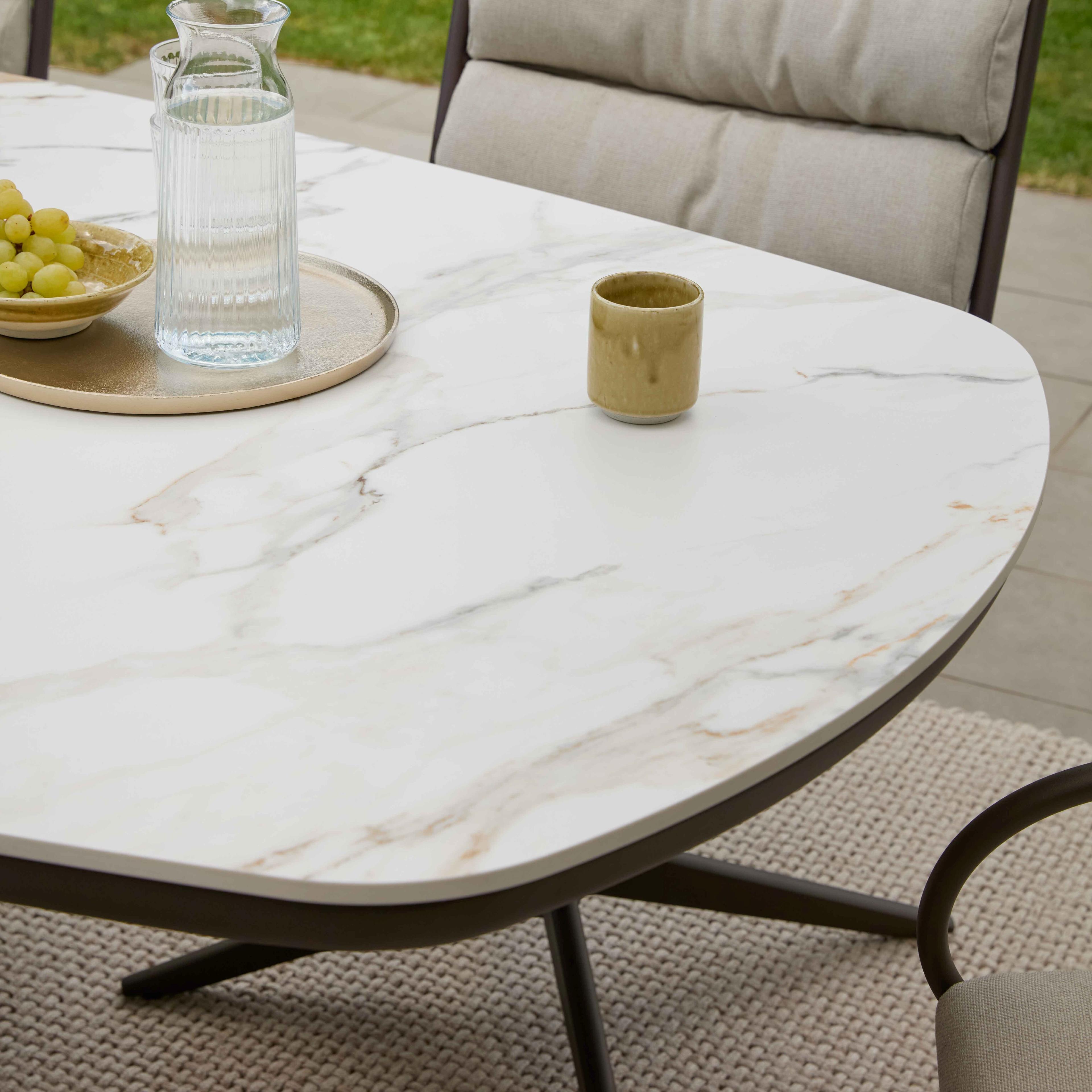 De Zanzibar is verkrijgbaar in 4 varianten: Bronze frame met Marble blad, Oyster frame met Oyster blad, Taupe frame met Light Grey blad en Black frame met Light Grey blad. Welke sfeer jij ook zoekt, er is altijd wel een passende stoel in de Apple Bee collectie om jouw Zanzibar dining tuinset te personaliseren.
