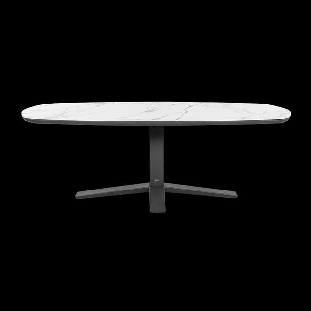 De Zanzibar dining tuintafel past in de retrosfeer van begin 20e eeuw. Net als de originele ontwerpen uit die tijd, zal ook deze Zanzibar na vele jaren niks aan zeggingskracht hebben verloren. Hij blinkt uit in comfort en gebruiksgemak. De aluminium tafelpoot is gecentreerd voor optimale beenruimte. Het HPMS stone tafelblad heeft een zgn. vals-ovaal vorm, die ook aan de kopse zijden volwaardige zitplaatsen biedt.