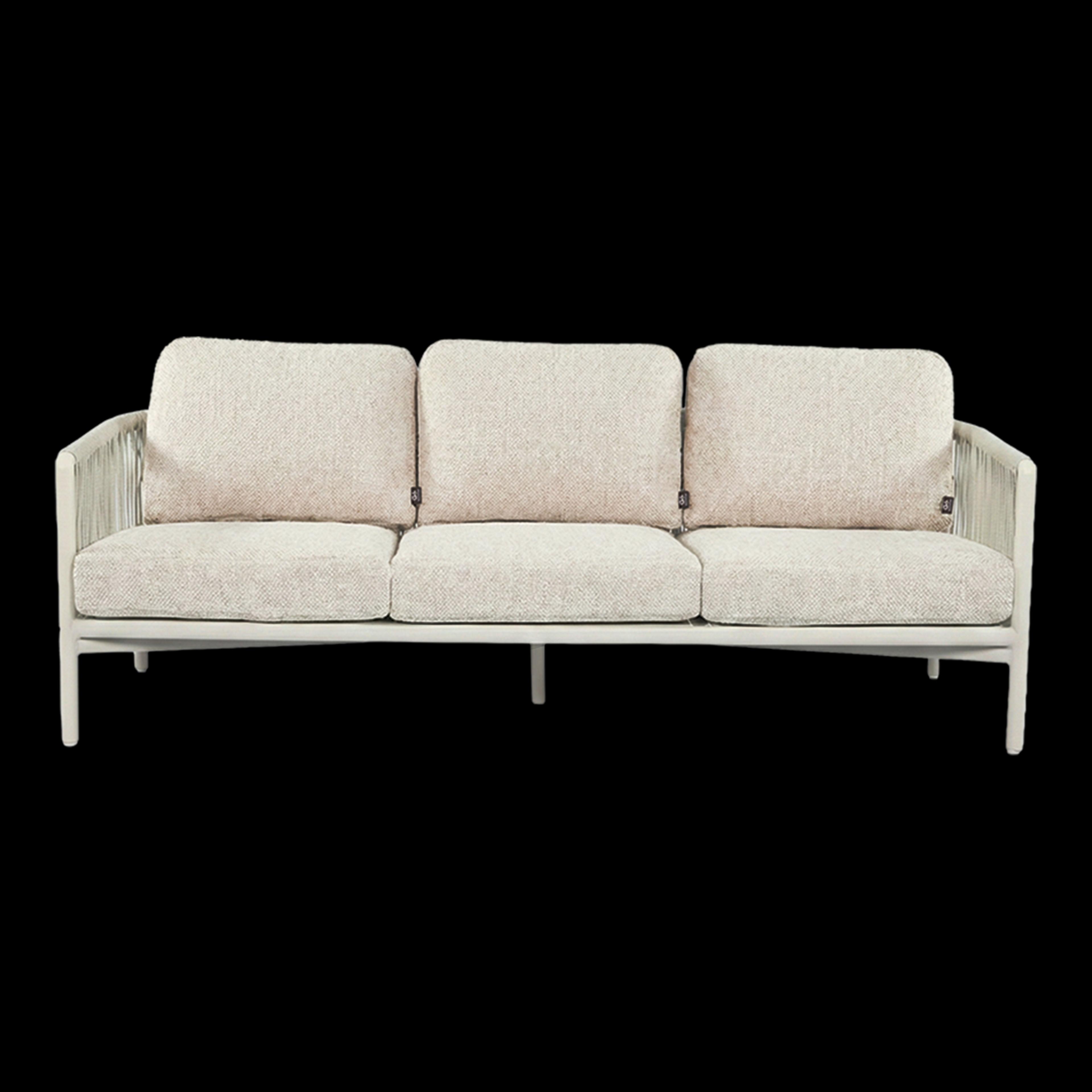The Bora Bora lounge chair in the color Oyster fits into any outdoor space. In this oyster variant, everything has been kept light and fresh, working with ton-sur-ton colors. The oyster-colored aluminum frame is interwoven with rope, creating a transparent and airy look. Rope is not only aesthetically pleasing, but also exceptionally strong and durable.