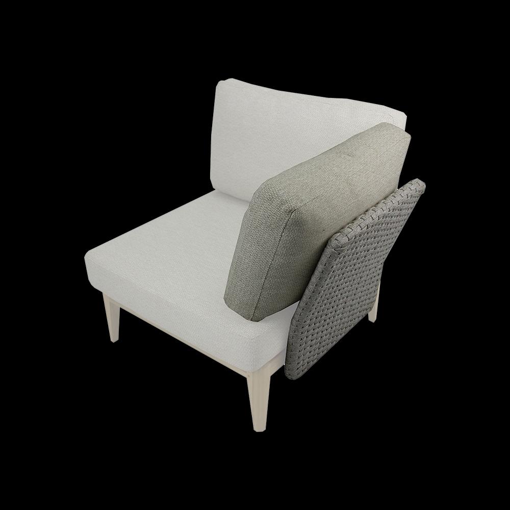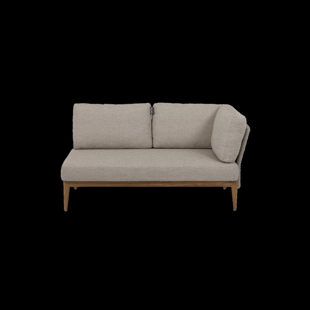 The modular Lisa lounge set exudes pure elegance with its soft lines, subtle details, and striking contrasts. You can configure this set entirely to your wishes. The foundation is a refined base of natural teak with subtly rounded legs. On top of this, you place separate arm and back panels, tightly woven with strong and comfortable flat rope. The cushions and rope are kept neutral, while the lounge side tables are designed to create an exciting contrast. These tables are made of aluminum with a concrete base, finished in a stylish taupe color. The modular design offers countless possibilities to adapt the set to your outdoor space.