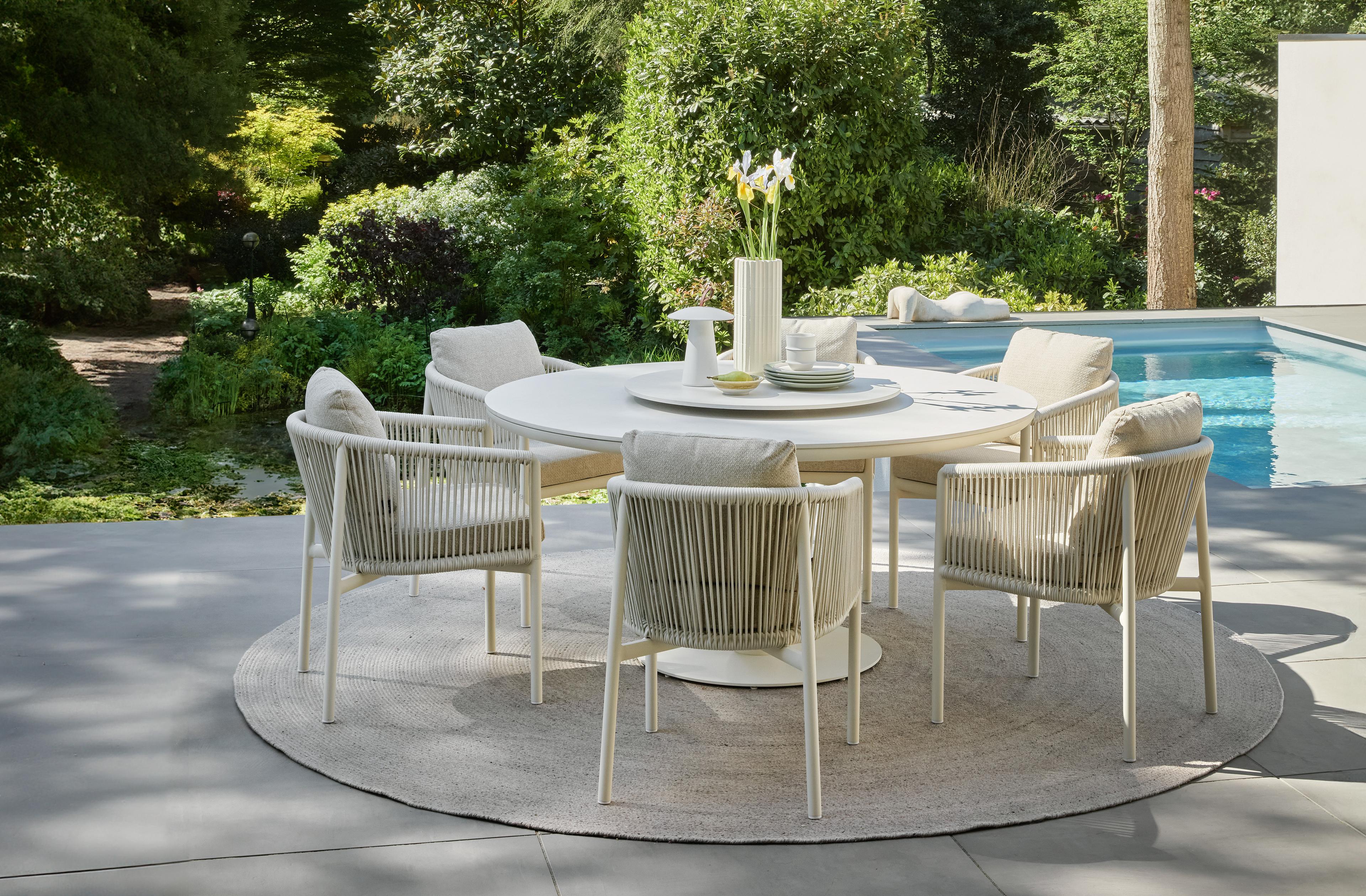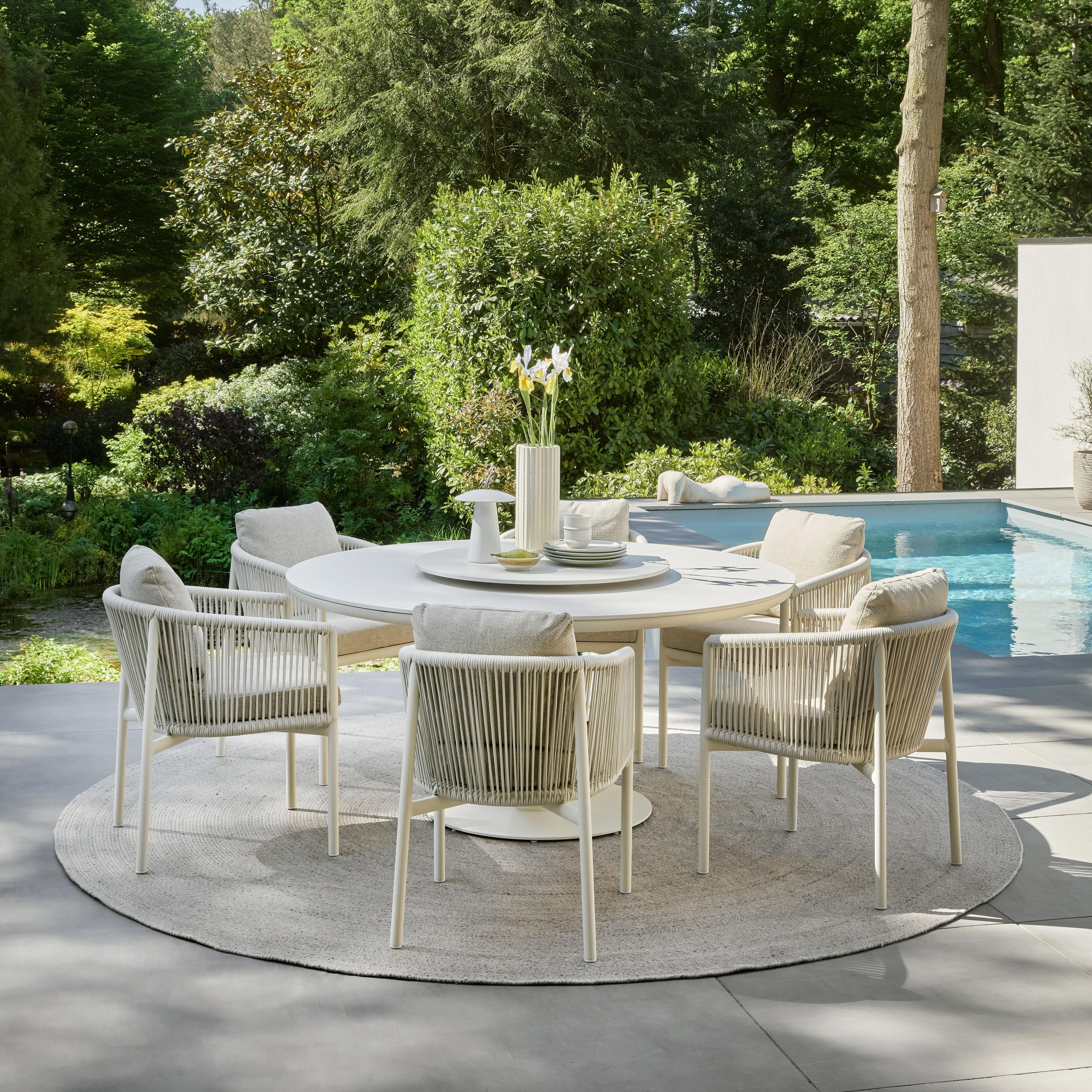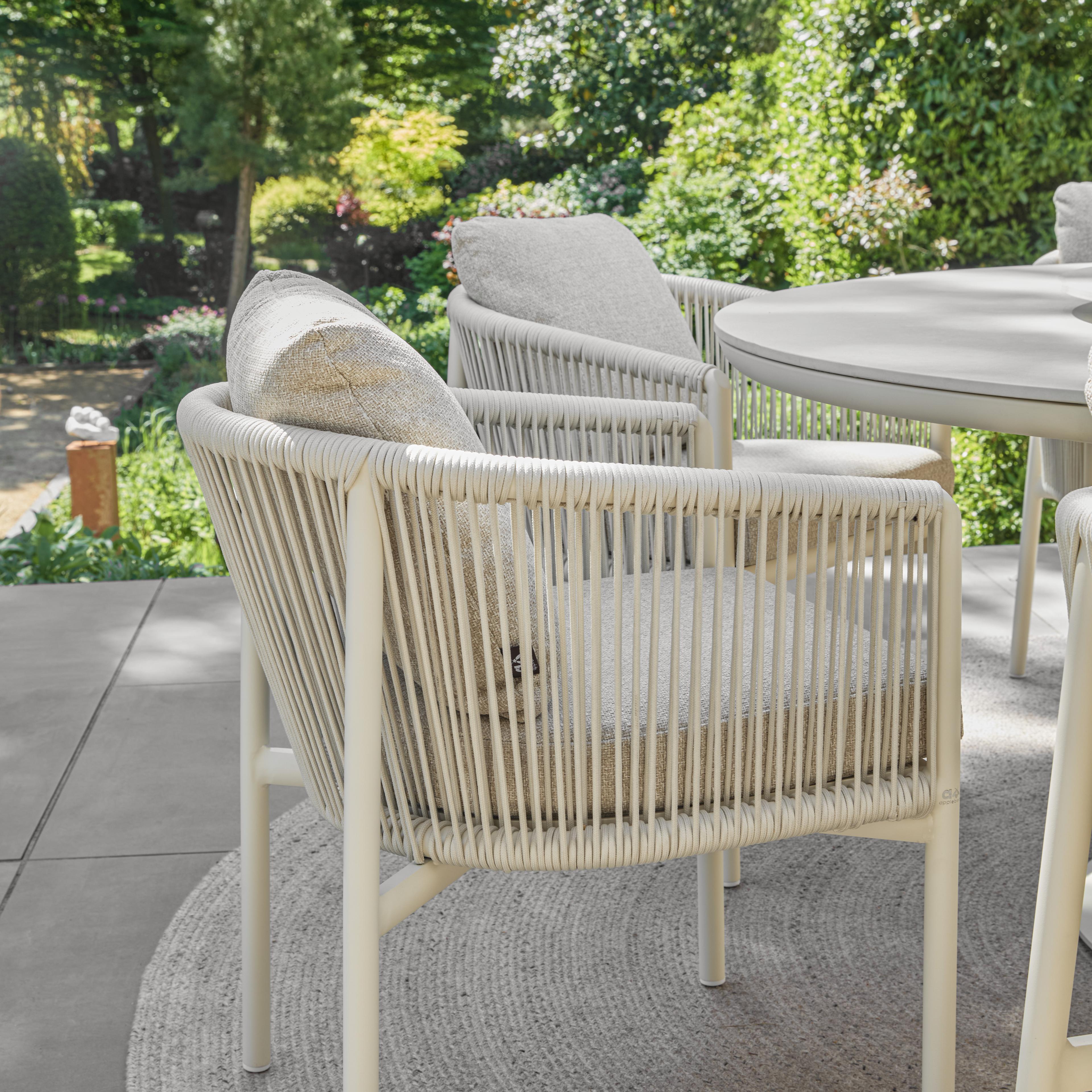 Deze Bora Bora dining tuinset is de ideale keuze voor iedereen die op zoek is naar kwaliteit, stijl en een frisse uitstraling. In deze oyster variant is alles licht en fris gehouden en is gewerkt met ton-sur-ton kleuren. Het raffinement van de stoel zit hem in de details: de armleuningen zijn fraai afgeschuind en de achterpoten zijn een tikkeltje verder naar buiten gezet. Het comfortabele rope is buitengewoon sterk en zorgt voor een esthetisch aantrekkelijke transparante look. Combineer de Bora Bora dining tuinstoel met de bijpassende Melville of Zanzibar dining tuintafels of met teaktafels zoals de Martinique of Joie de Vivre.