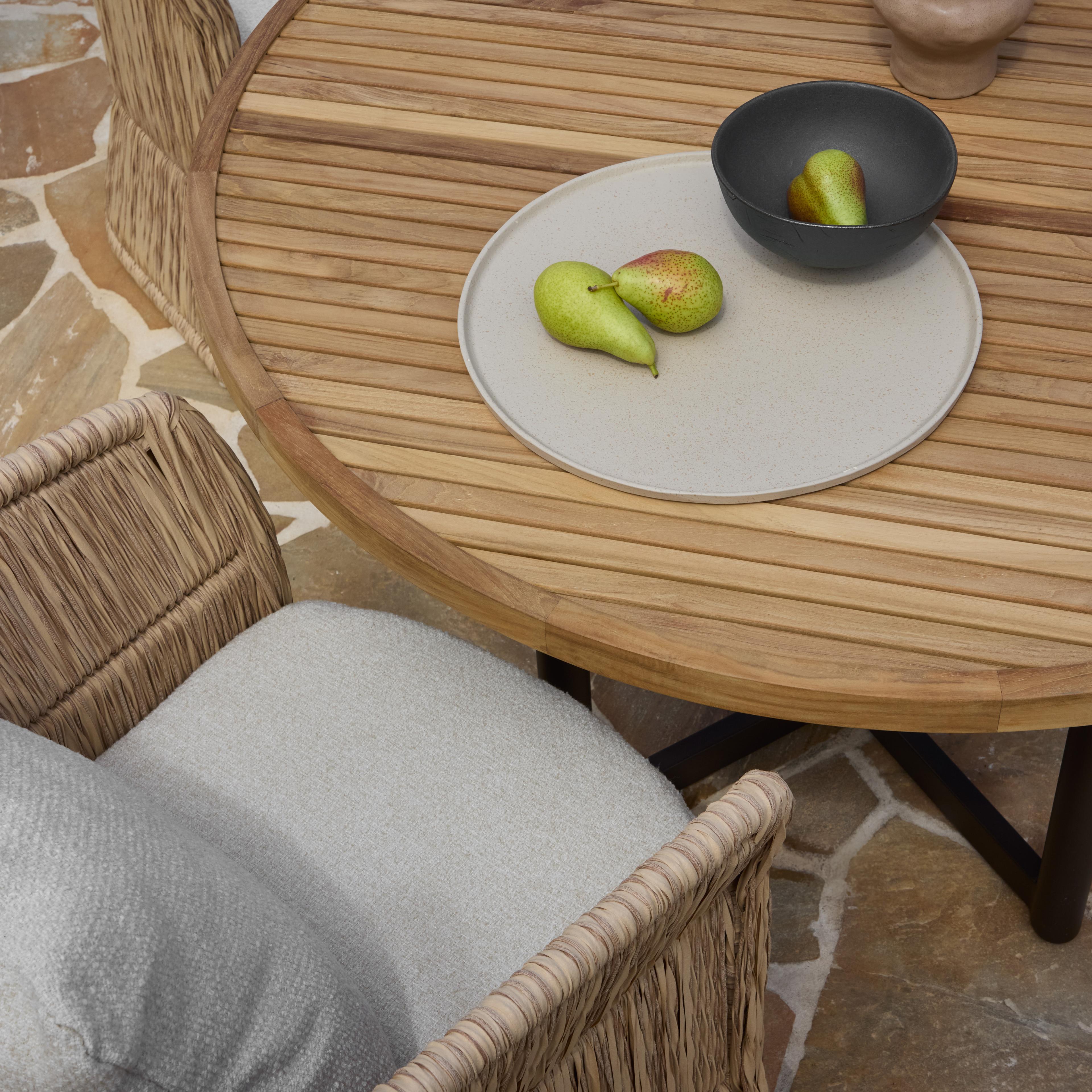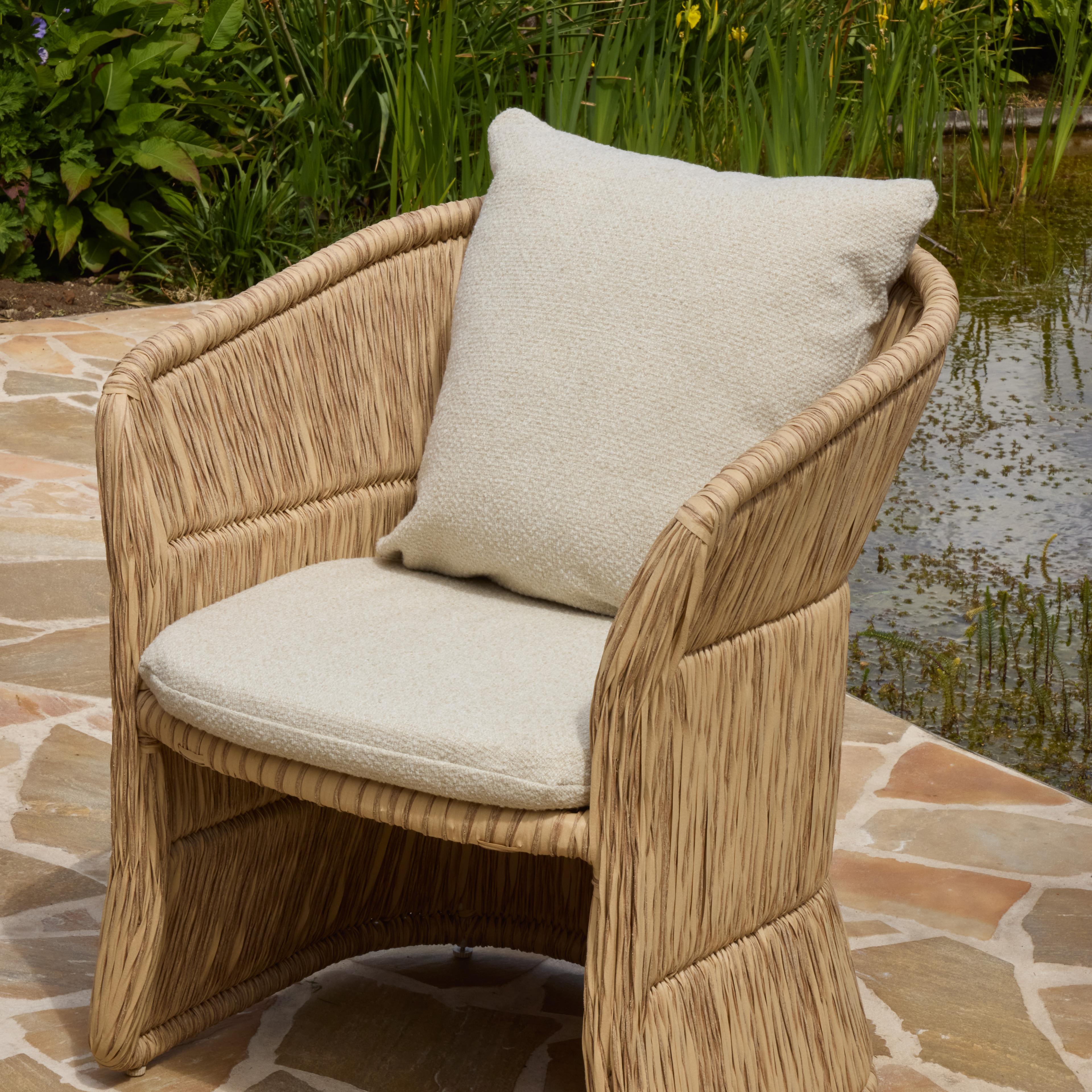 Met de Gili dining tuinstoel hoef je niet meer op reis te gaan om het vakantiegevoel te ervaren! Het vlechtmateriaal 'twisted leaf' geeft de stoel een natuurlijke en rustieke uitstraling voor een ontspannen sfeer. De kussens zijn gestoffeerd met de luxe Bouclé cream stof en hebben een Bee Wett® vulling, wat zorgt voor comfort en weerbestendigheid. De Gili dining tuinstoel matcht perfect met verschillende tafels. Combineer hem bijvoorbeeld met de Martinique dining tuintafel met zijn unieke 'barrel shape' en royale afmetingen, of met de Jakarta dining tuintafel met een rond of vierkant teakhouten blad en aluminium onderstel. Zo creëer je het meest comfortabele en duurzame vakantiegevoel!