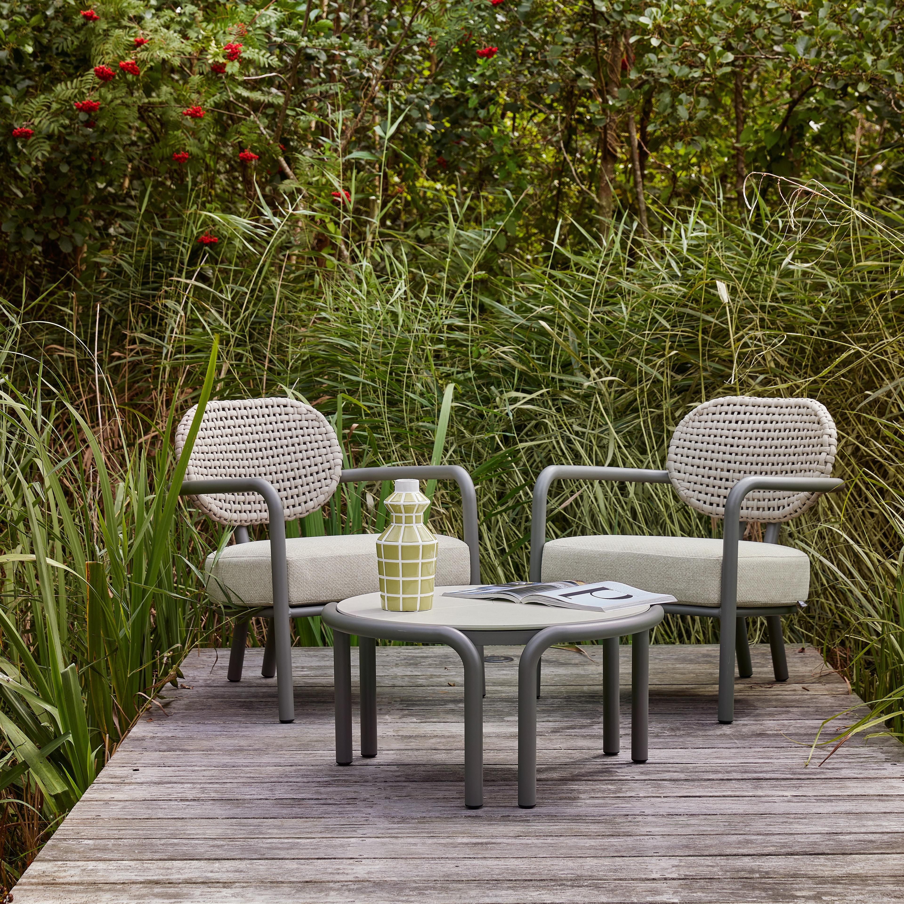 De Lugano loungeset heeft een uniek en innovatief design, dat gegarandeerd de aandacht trekt. Kenmerkend voor deze Lugano loungeset zijn de ronde aluminium armleuningen die naadloos doorlopen in de achterpoten. Ditzelfde principe wordt toegepast in het bijpassende tafeltje. Gebruiksgemak staat voorop. Zo zijn de comfortabele dikke Bee Wett® kussens speciaal ontworpen om weerbestendig te zijn en snel te drogen. Er is gewerkt met warme ton-sut-ton grijstinten die perfect combineren met andere Apple Bee collecties, zoals bijvoorbeeld met de Maui lounge set. Met zijn lichte gewicht en comfortabele zit, biedt deze compacte stoel een volwaardige additionele zitplaats.