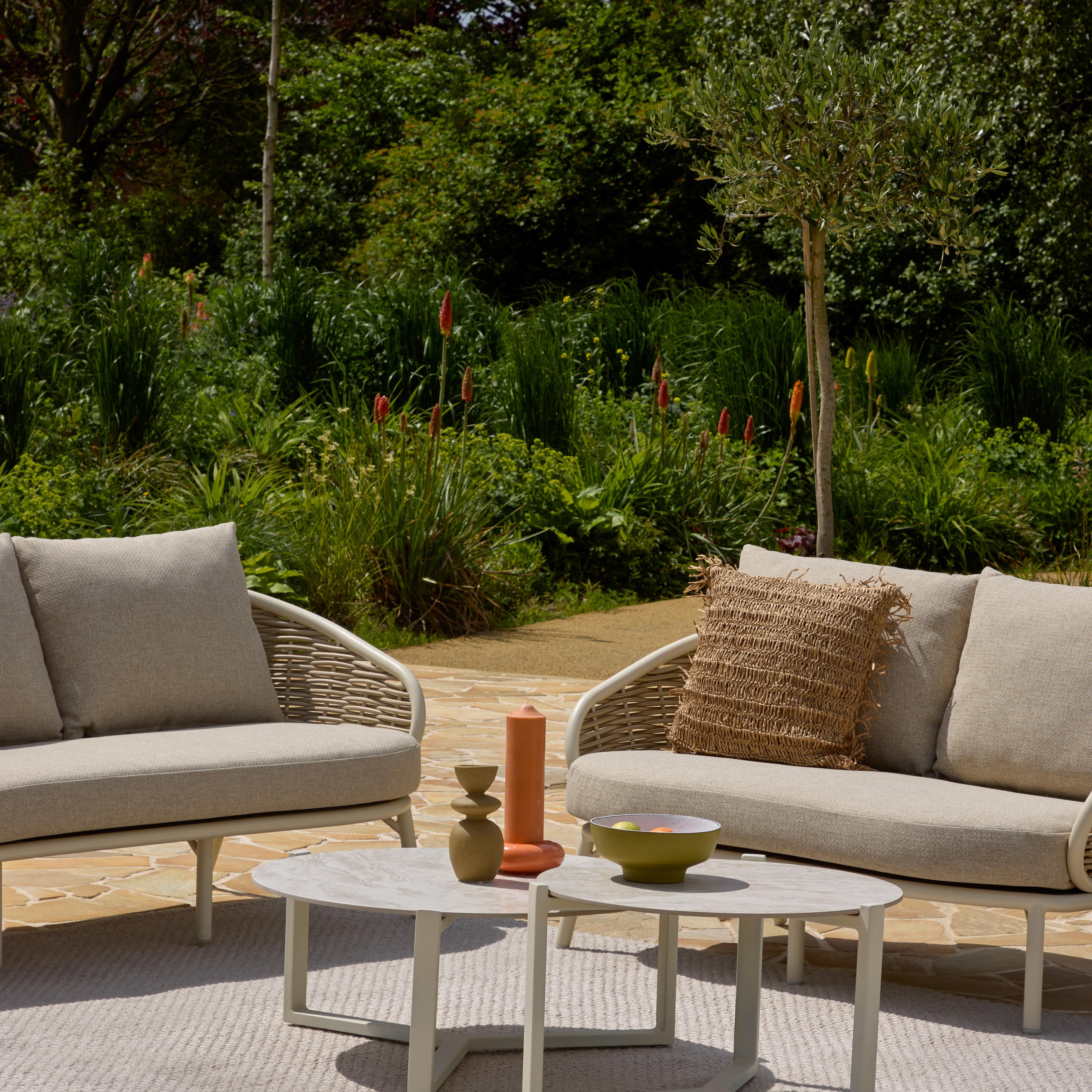 Kenmerkend in de Pine Key collectie zijn de zachte, ronde lijnen. De ergonomisch ontworpen rug en kussens bieden optimale ondersteuning, voor ultiem zitcomfort. Het lichte oysterkleurige buisframe contrasteert met de natuurtinten van de kussens en het Biculair® vlechtdraad. Dit vlechtdraad geeft de Pine Key een luxe, natuurlijke uitstraling. De loungeset biedt een 1, 2 en 3-zitter met een bijpassende set van twee ranke lounge tuintafels. Wil je meer 'body' aan de set geven, kies dan voor de Tonga lounge tuintafels. Met de Pine Key collectie creëer je een comfortabele loungeplek voor lange zomeravonden!
